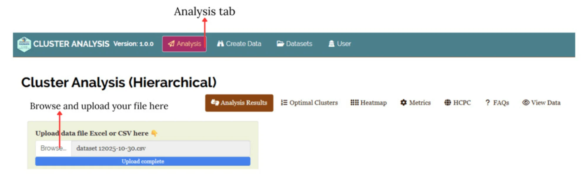 To get started with cluster analysis, visit www.raisins.live, navigate to Cluster Analysis under Data Analysis as shown in Figure 1.
